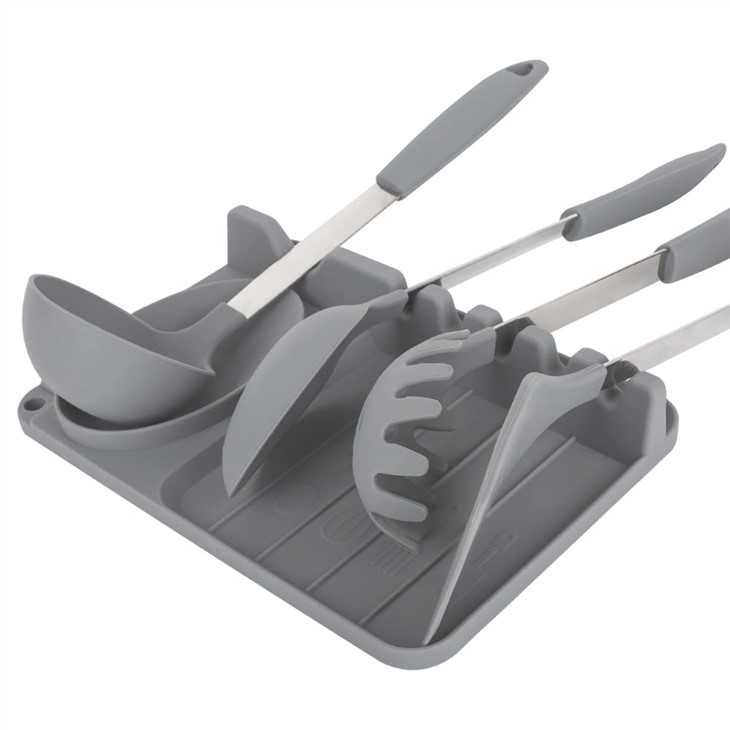 2. يعتبر مسند ملعقة المطبخ هذا مثاليًا لجميع أدوات تناول الطعام الخاصة بك ويمكنه استيعاب ما يصل إلى 4 في وقت واحد. تتسع الفتحات الأكبر حجمًا للملاعق الخشبية ، والملقط ، والمغارف بسهولة. من الضروري أن يكون لديك حامل ملعقة المطبخ متعدد الأغراض للشوي والخبز والقلي والطبخ البسيط. يضاعف حامل ملعقة المطبخ هذا كحامل ملاعق رائع للموقد.